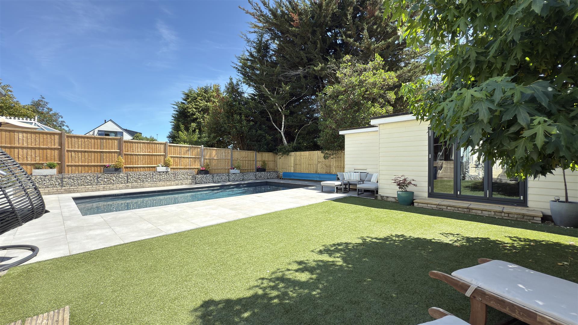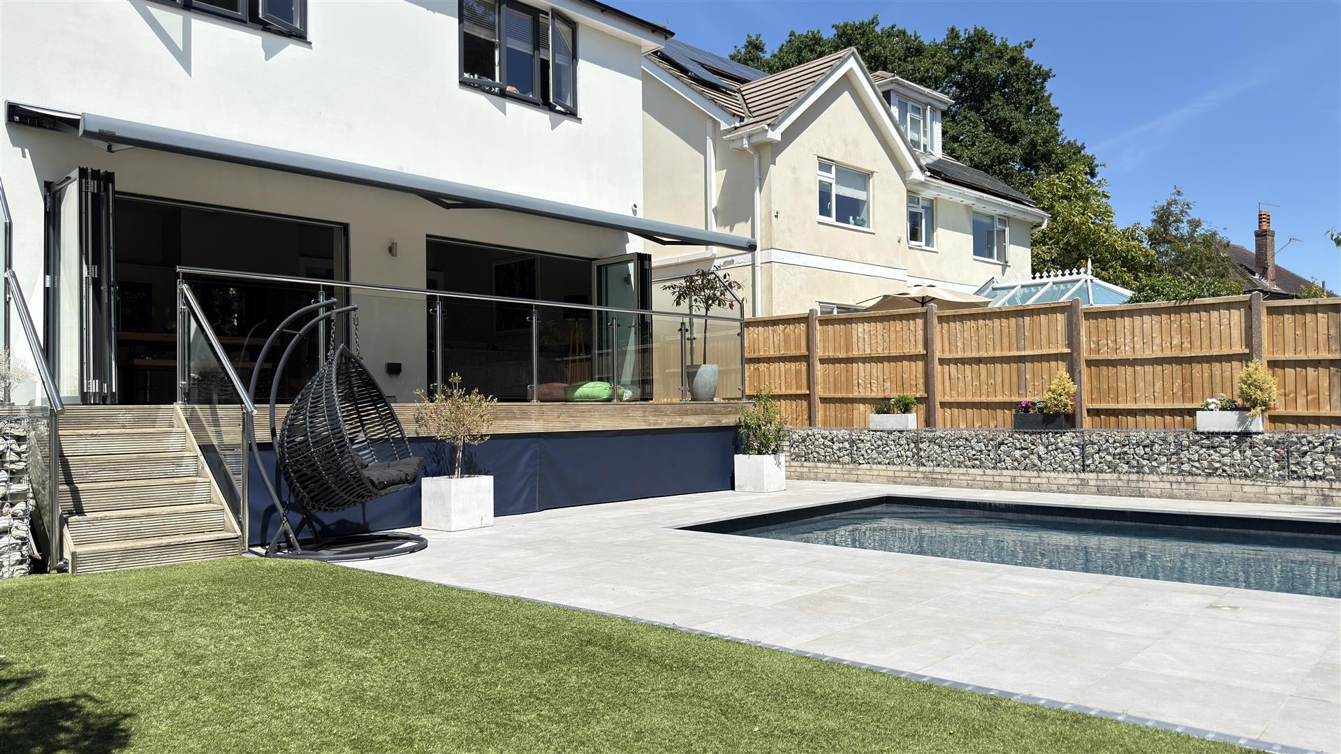 A beautifully presented four-bedroom detached home set on the sought-after Blake Hill Crescent — one of Poole’s quieter, more desirable residential roads. This property offers generous living space, a gated driveway, landscaped gardens and a private swimming pool, along with a fully equipped summer house/home office.
