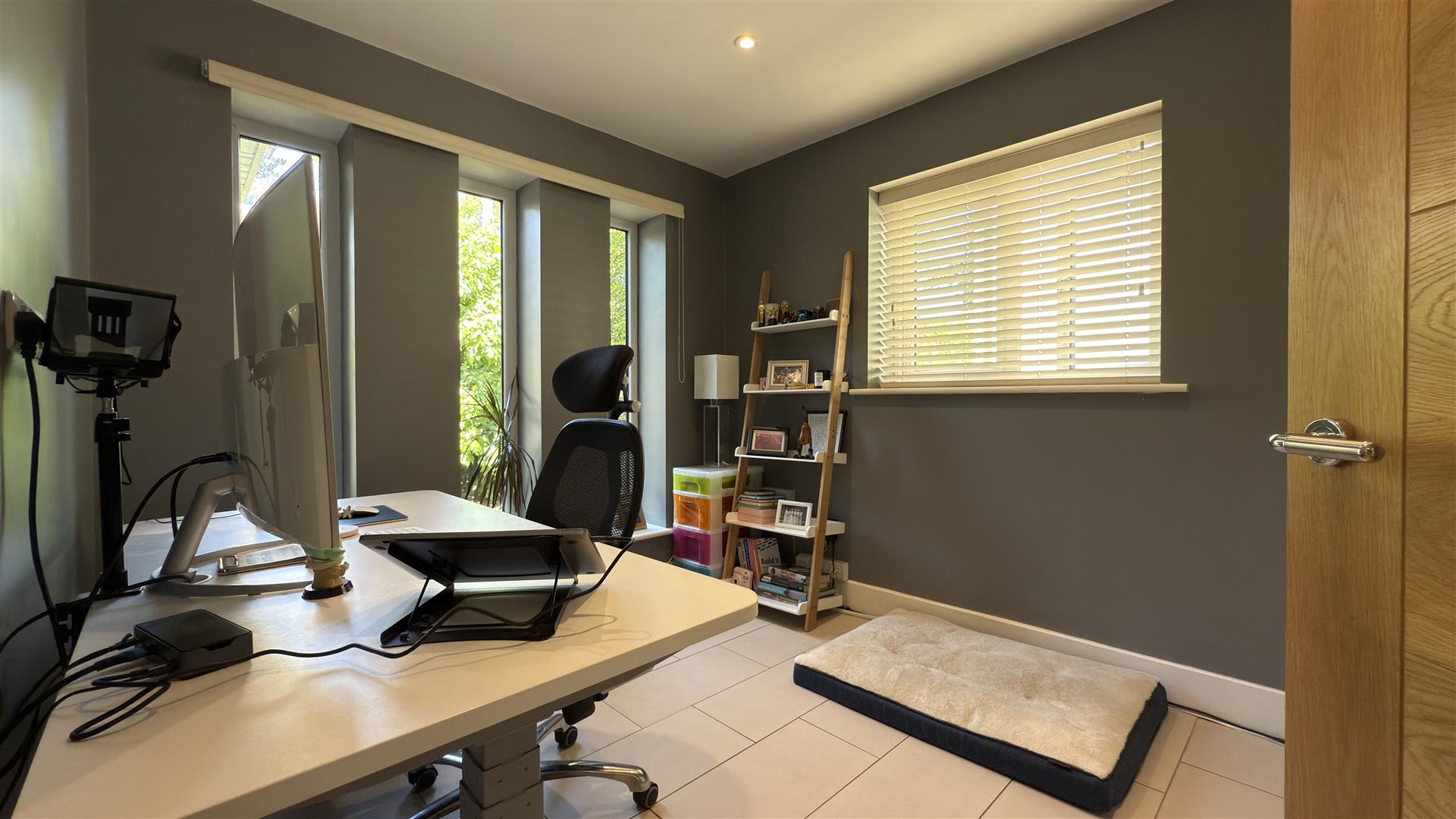 The ground floor centres around an impressive open-plan kitchen/dining/living space measuring over 24ft, flooded with natural light and opening directly onto the rear garden. An additional separate lounge provides a cosy second reception room, while a dedicated study makes home-working practical. There is also a utility room, ground-floor WC, and an integral garage.
