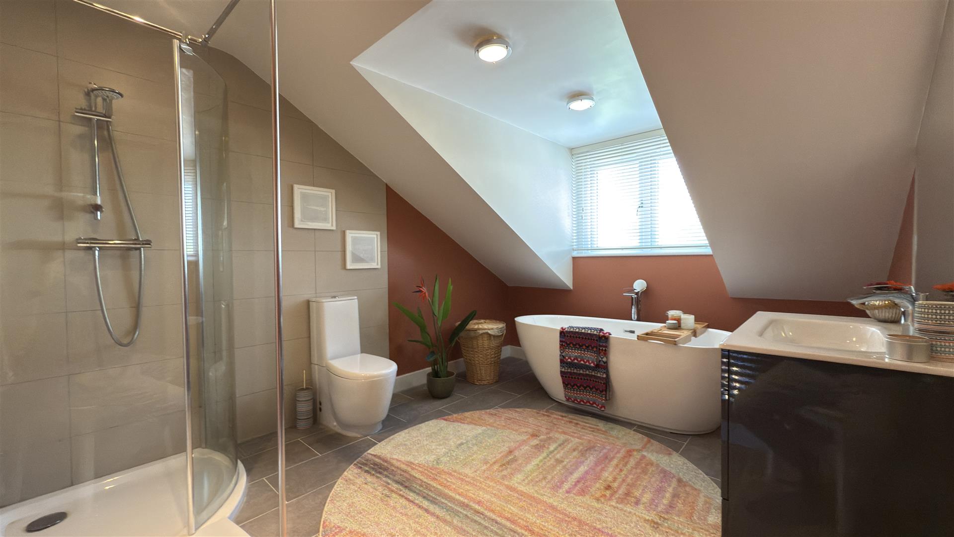 Upstairs, the property offers four well-proportioned bedrooms. The master bedroom features both a dressing area and a modern ensuite. Bedroom Two also benefits from its own ensuite, and Bedrooms Three and Four are served by a contemporary family shower room. The rear garden is where this home truly steps up a level — a private outdoor space with a swimming pool, perfect for families and entertaining. A stylish summer house/garden office/gym provides extra flexibility for work, hobbies or guest overflow.