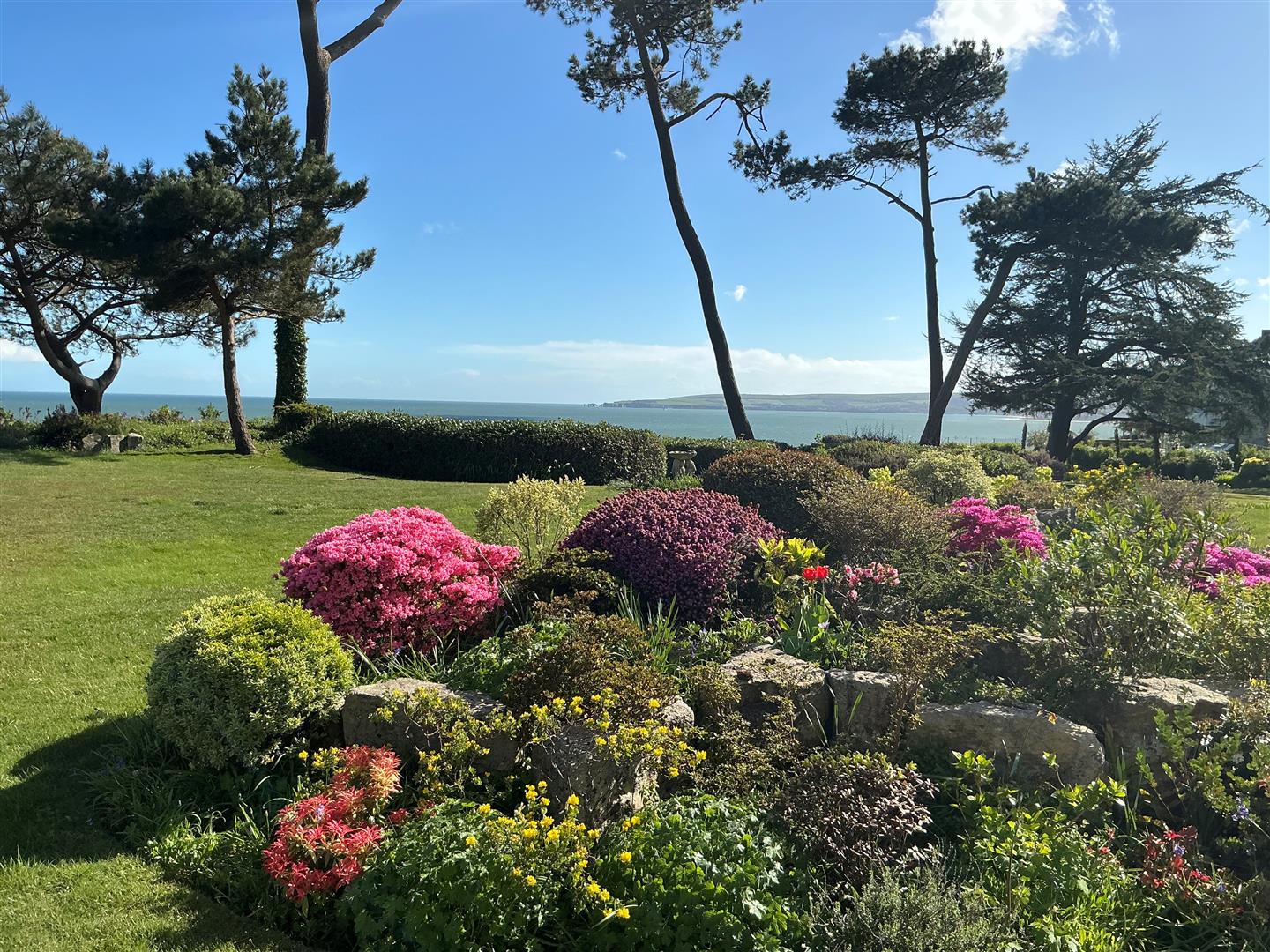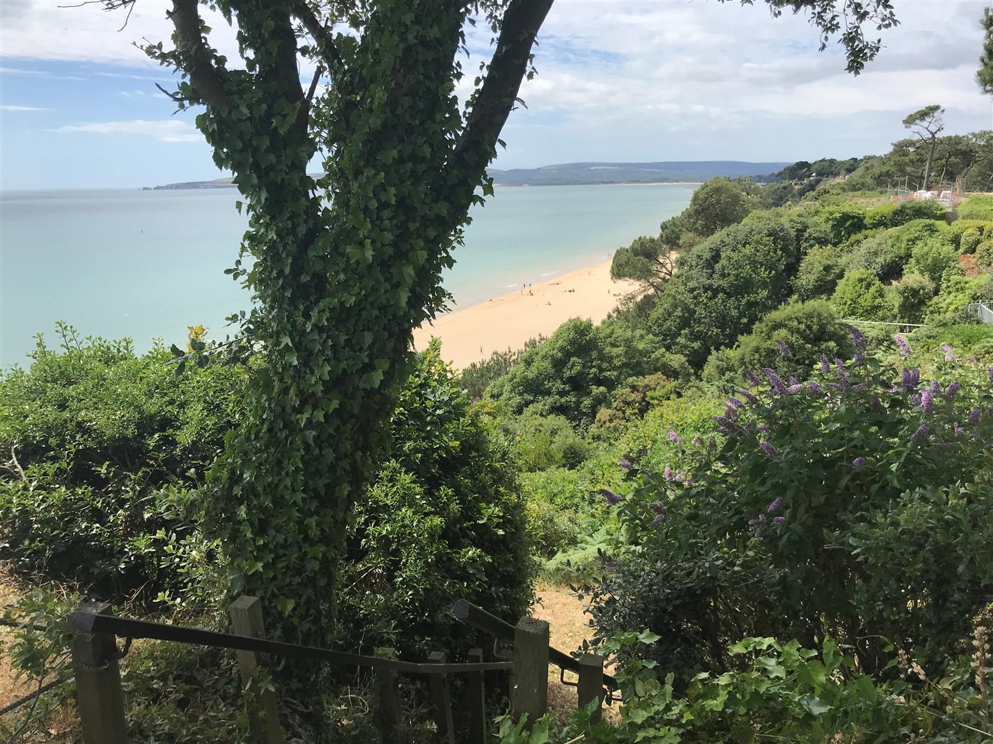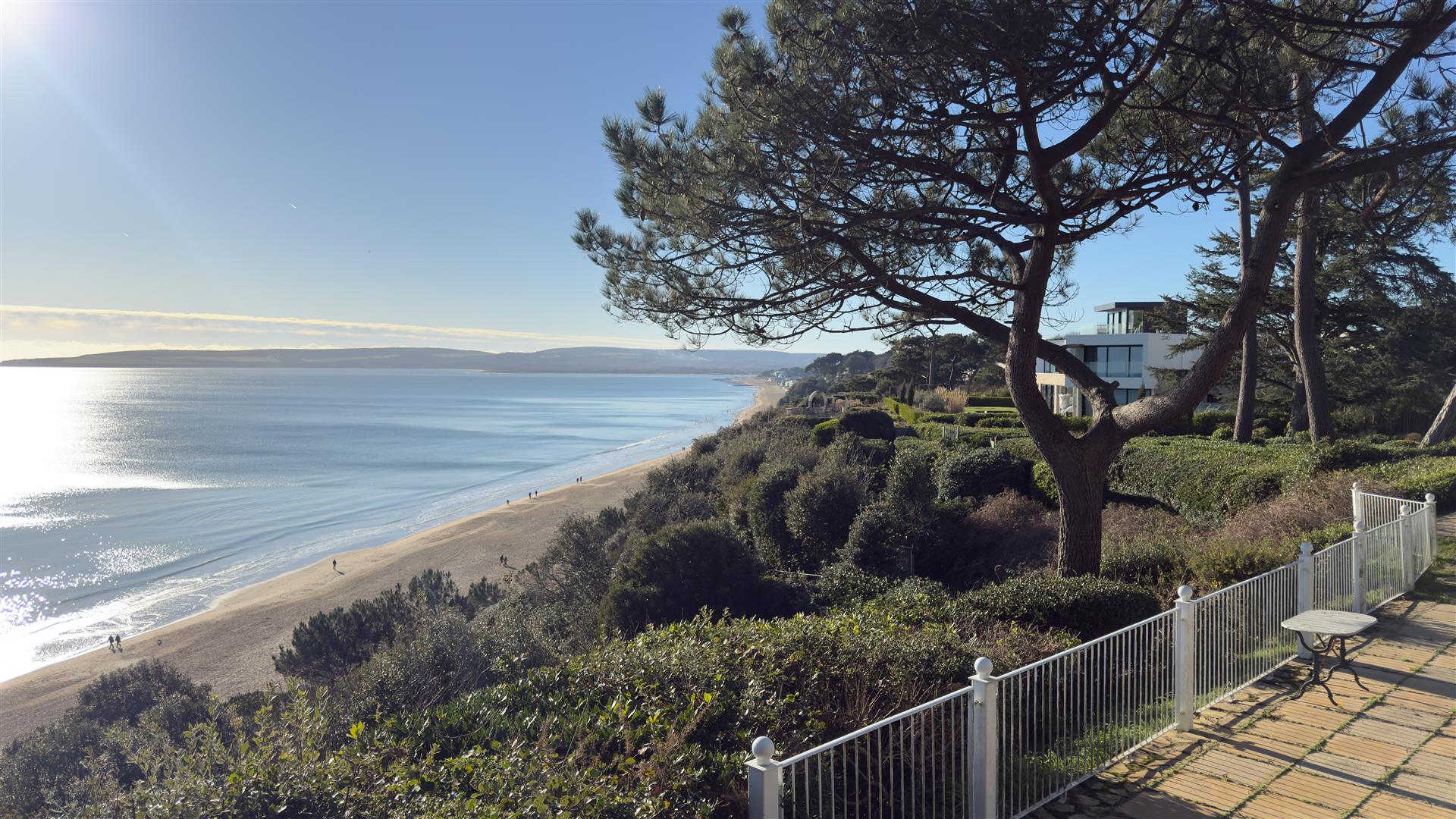 The gardens to the rear are mainly laid to lawn with various planted areas and features a terrace area with sea views spanning from Old Harry Rocks to Hengistbury Head, this then leads to a private gated cliff path to the promenade and award-winning beaches.