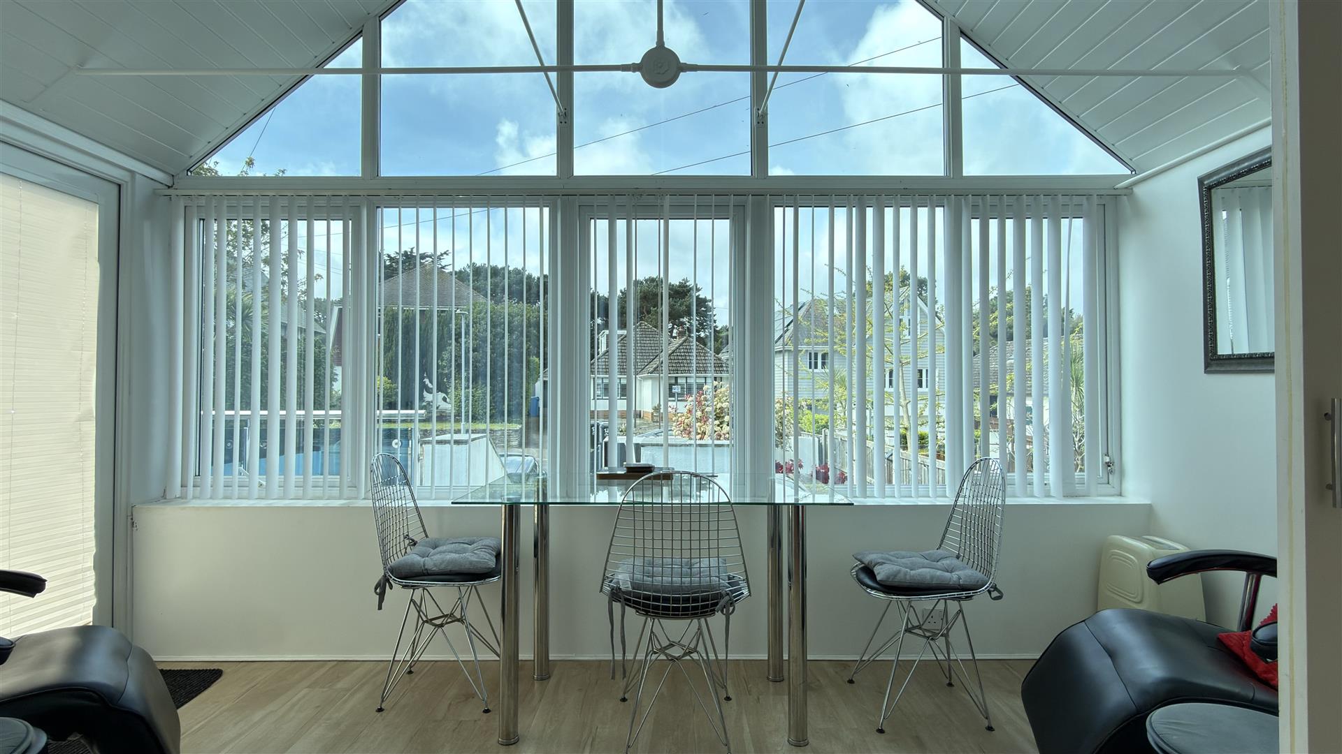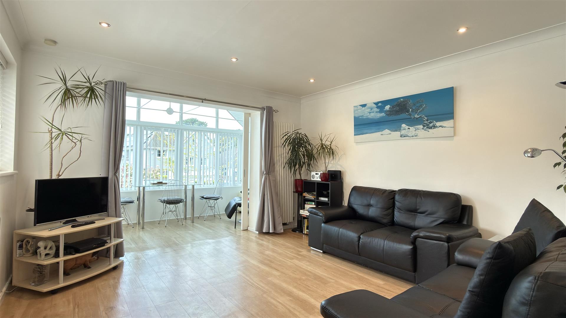 The accommodation is arranged to provide a practical and balanced layout, with a bright main living room leading directly into a full-width sun room, creating a natural extension of the living space and a standout feature for both everyday use and entertaining. The separate kitchen is modern and efficiently designed, with ample storage and worktop space.