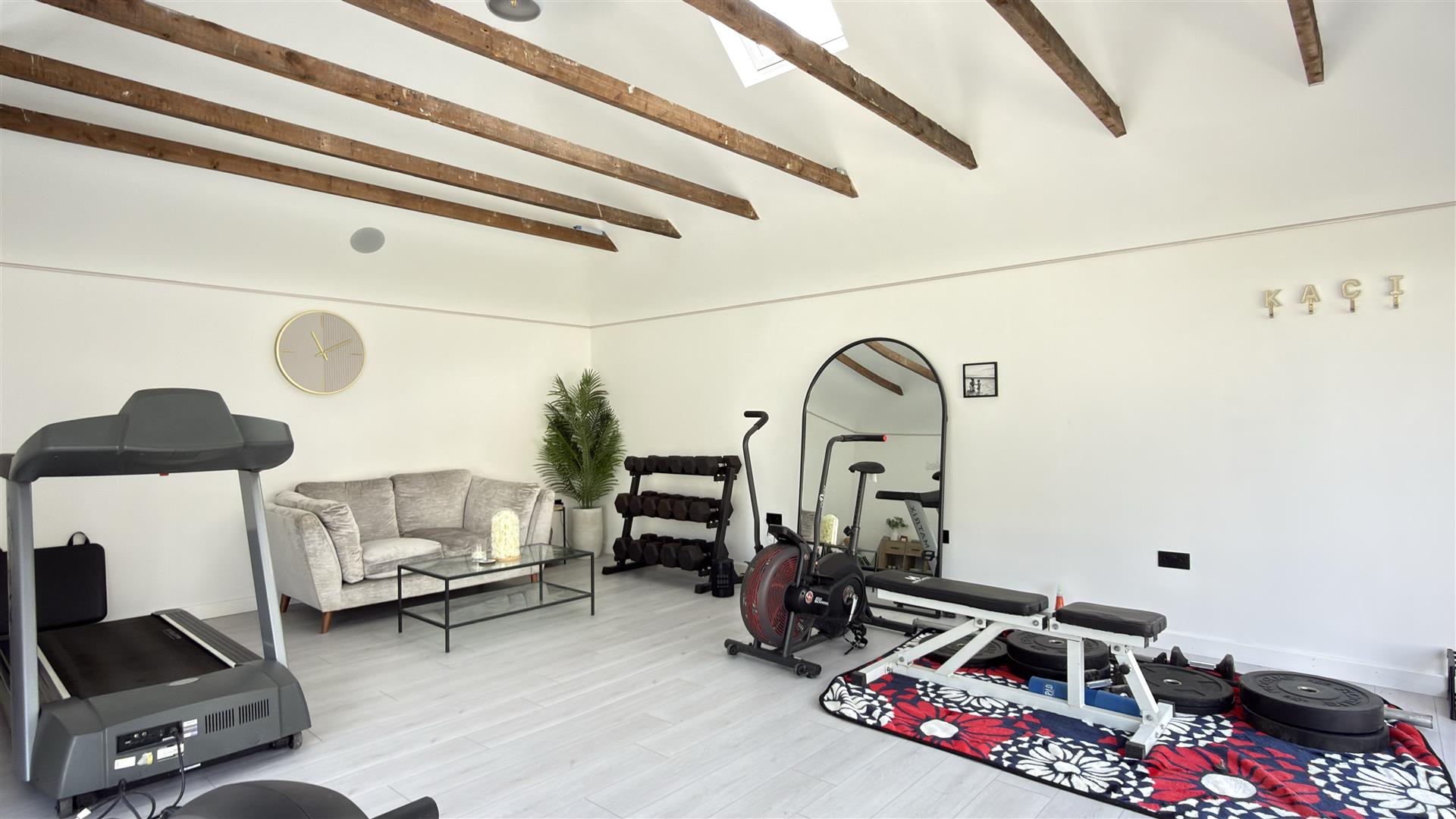 Externally, the property really starts to stand out. The rear garden is substantial, offering a wide, open aspect with plenty of space for extension, landscaping or further development (subject to the relevant permissions). In addition, there is a detached studio/workshop and a separate garage, providing excellent versatility for home working, storage, or conversion potential.
